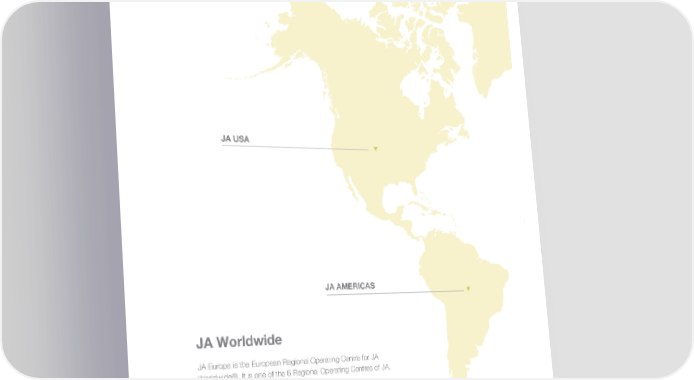 JA’s Network JA USA JA AMERICAS JA Worldwide JA Europe is the European Regional Operating Centre for JA Worldwide®. It is one of the 6 Regional Operating Centres of JA. With more than 100 member countries, the JA Worldwide network is powered by over 450,000 volunteers and mentors from all sectors of society, reaching more than 10 million young people around the world every year. 12 JA EUROPE / Annual Report 2016