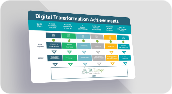 Digital Transformation Achievements QUICK #1 MAKE #2 CREATE #3 #4 TEST TECH #5 SUPPORT #6 KEY 2021 GOALS TEAM MORE COMMUNITY ONLINE CONTENT ALUMNI EUROPEAN EVENTS EFFICIENT OF PRACTICE COMPETITIONS PARTNERSHIPS PLATFORM ONLINE MAIN EFFICIENCY & MAPPING Gen-E 2022 COMPETITIONS INTEGRATION INTEGRATION Full Connected Hybrid Programs PLANNING TOOLS TASK FORCES Microsoft Dynamics Helping Countries with Tech Alison Blue Economy Start Up platform Integrated in Launched full month of LATEST Project Operations Challenges Incorporated into Gen-E PMI Online Course Created Gather Finance and Operations Ukrainian Learning Platform Alumni Vital Part of Gen-E 2022 hybrid events 360°