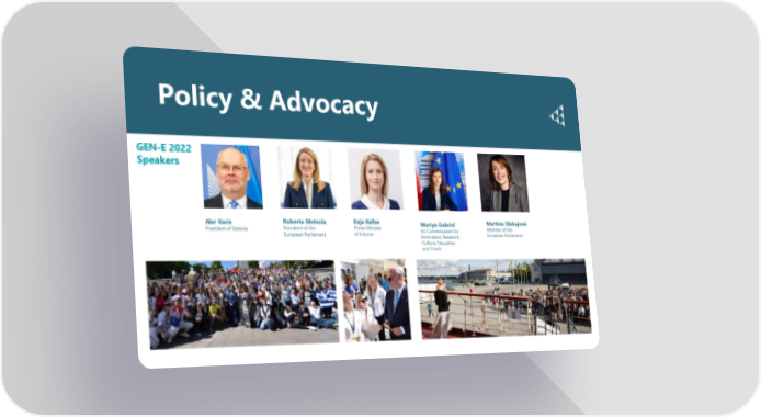 Policy & Advocacy GEN-E 2022 Speakers Alar Karis Roberta Metsola Kaja Kallas Mariya Gabriel Martina Dlabajová President of Estonia President of the Prime Minister EU Commissioner for Member of the European Parliament of Estonia Innovation, Research, European Parliament Culture, Education and Youth