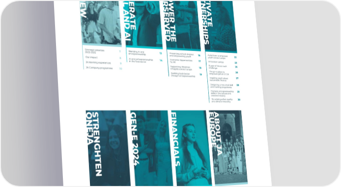 TABLE OF CONTENTS P C D A U E O M A U C N I V G R L C D P E I T T E T R O E I N A L V R V W E L E S I A E R R E E A T W A R S R E N T H V T D E I E H P A D E S I Blending AI and Preventing school dropout A platform to empower Strategic priorities 13 7 16 22 entrepreneurship and empowering youth youth across Europe 2023-2025 Economic Opportunities Innovation camps 17 23 8 Our impact AI and entrepreneruship 14 for All in the food sector 15 year of the sci-tech 25 JA learning experiences 9 challenge Supporting Ukrainian 18 refugees across Europe The go-to place to 26 JA Company programme 10 empower girls in STEM Building back better 19 through entrepreneurship 27 Inspiring youth about sustainable finance 28 Designing a new retail skill and training programme Promote entrepreneurship 29 skills in the cultural and creative industry Re-valuing urban quality 30 O S and climate neutrality E A F G I T U B E N N R R N O E A E O - J U N E N A P T C G 2 E J I 0 H A A 2 T L 4 E S N 41 Virtual experience 49 33 One logo, one JA Annual accounts JA in Europe 44 2023-2024 42 50 JA Europe's 32 top On-site experience Our Board members 34 schools Income statements 45 43 What happened in Catania 51 JA Europe team 20 years of JA Alumni 35 didn't stay in Catania Equity and reserves 46 Europe CEOs of JA network 52 in Europe Six entrepreneurs and 36 their outstanding 54 Certifications anyone? achievements 55 Recognising the 37 Who is shaping the JA Europe network future of EU business? 56 Nobel Peace Prize 38 JA Europe and the G7 2024 57 Our supporters, partners & donors 2023/2024 Annual Report - JA Europe 4