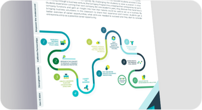 w e i v r e v O JA COMPANY PROGRAMME I A d n a l a t i g i Established in 1919, our flagship initiative, the JA Company Programme, offers students aged 15-19 the D e opportunity to learn how to move a business idea from concept to reality. The programme provides t a r teachers with a series of learning-by-doing business, economics and entrepreneurship activities, a great e l e way to help students succeed in a global economy. Every year, almost 400,000 students enrolled in the c c programme, creating 30,000 mini-companies. By challenging the students to solve a problem in their A community through a business venture, the Company Programme unleashes their entrepreneurial spirit. Students experience running their own company (for one academic year), they discover first-hand how a d company functions and gain an insight into how their talents could be used to set up a business. By e v bringing business volunteers in the classroom to share their experience and mentor, students get a r e s better overview of career opportunities, what skills are needed to succeed and they start to consider r e d entrepreneurship as a potential career opportunity. n U e h t r e w o p m E s p i h s r e n t r a P e t a v i t l u C A J e n O n e t h g n e r t S 4 2 0 2 E - n e G s l a i c n a n i F e p o r u E A J t u o b A 2023/2024 Annual Report - JA Europe 10