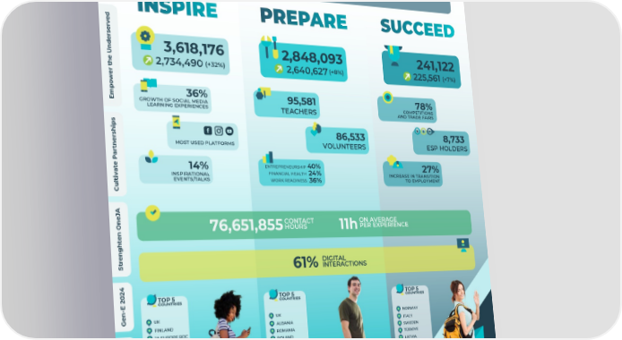 w e i v r e v O OUR IMPACT I A 1ST JULY 2023 TO 30TH JUNE 2024 d n a l a t i g i D e 6,707,391 t TOTAL LEARNING a r (+20%) EXPERIENCES e 5,600,678 l e c c A d e v r e s r e d 3,618,176 n 241,122 2,848,093 U e (+32%) (+8%) (+7%) 2,734,490 225,561 2,640,627 h t r e w o p 36% m 78% 95,581 E GROWTH OF SOCIAL MEDIA COMPETITIONS LEARNING EXPERIENCES AND TRADE FAIRS TEACHERS s p i h 8,733 86,533 s r e MOST USED PLATFORMS ESP HOLDERS VOLUNTEERS n t r a P e ENTREPRENEURSHIP 40% t 14% 27% a FINANCIAL HEALTH 24% INCREASE IN TRANSITION INSPIRATIONAL v i TO EMPLOYMENT EVENTS/TALKS t WORK READINESS 36% l u C A J e ON AVERAGE n CONTACT O PER EXPERIENCE HOURS 76,651,855 11h n e t h g n e r t DIGITAL S INTERACTIONS 61% 4 2 0 2 TOP 5 TOP 5 TOP 5 COUNTRIES COUNTRIES COUNTRIES E - n e UK UK NORWAY G FINLAND ALBANIA ITALY JA EUROPE ROC ROMANIA SWEDEN s l ROMANIA POLAND TÜRKIYE a i ITALY FINLAND LATVIA c n a n i F e p o r u E A J t u o b A *Adjustment has been made for 2022/2023 11,851 learning experiences that were allocated to succeed, while being inspire. *Number subject to final quality review by JA Worldwide and JA Europe. Data provided from JADE as 24/10/2024. 2023/2024 Annual Report - JA Europe 8