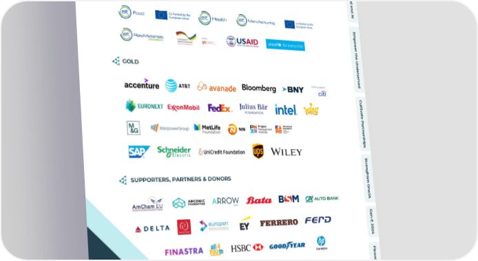 O v e r v i e w OUR SUPPORTERS, PARTNERS A c c e l & DONORS e r a t e D i g i t a l a n d INSTITUTIONAL A I E m p o w e r t h e U n d e r s GOLD e r v e d C u l t i v a t e P a r t n e r s h i p s S t r e n g h t e SUPPORTERS, PARTNERS & DONORS n O n e J A G e n - E 2 0 2 4 F i n a n c i a l s A b o u t J A E u r o p e JA Europe - 2023/2024 Annual Report 57