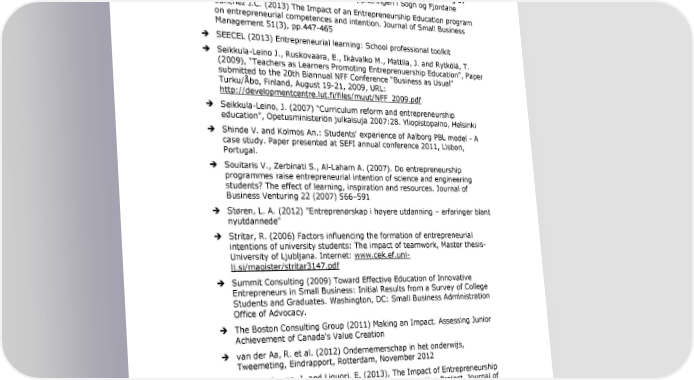 Entrepreneurship Education 3 A road to success Rideout E.C. and Gray D. O. (2013) Does Entrepreneurship Education Really Work? A Review and Methodological Critique of the Empirical Literature on the Effects of University-Based Entrepreneurship Education. Journal of Small Business Management 2013 51(3), pp. 3293351 Rosendahl Huber, L. et al. (2012) The effect of early entrepreneurship education Rotefoss, B. et al. (2009) - Entreprenørskap på høygir! - en evaluering av satsningen på entreprenørskap i grunnopplæringen i Sogn og Fjordane Sanchez J.C. (2013) The Impact of an Entrepreneurship Education program on entrepreneurial competences and intention. Journal of Small Business Management 51(3), pp.447-465 SEECEL (2013) Entrepreneurial learning: School professional toolkit Seikkula-Leino J., Ruskovaara, E., Ikävalko M., Mattila, J. and Rytkölä, T. (2009),
